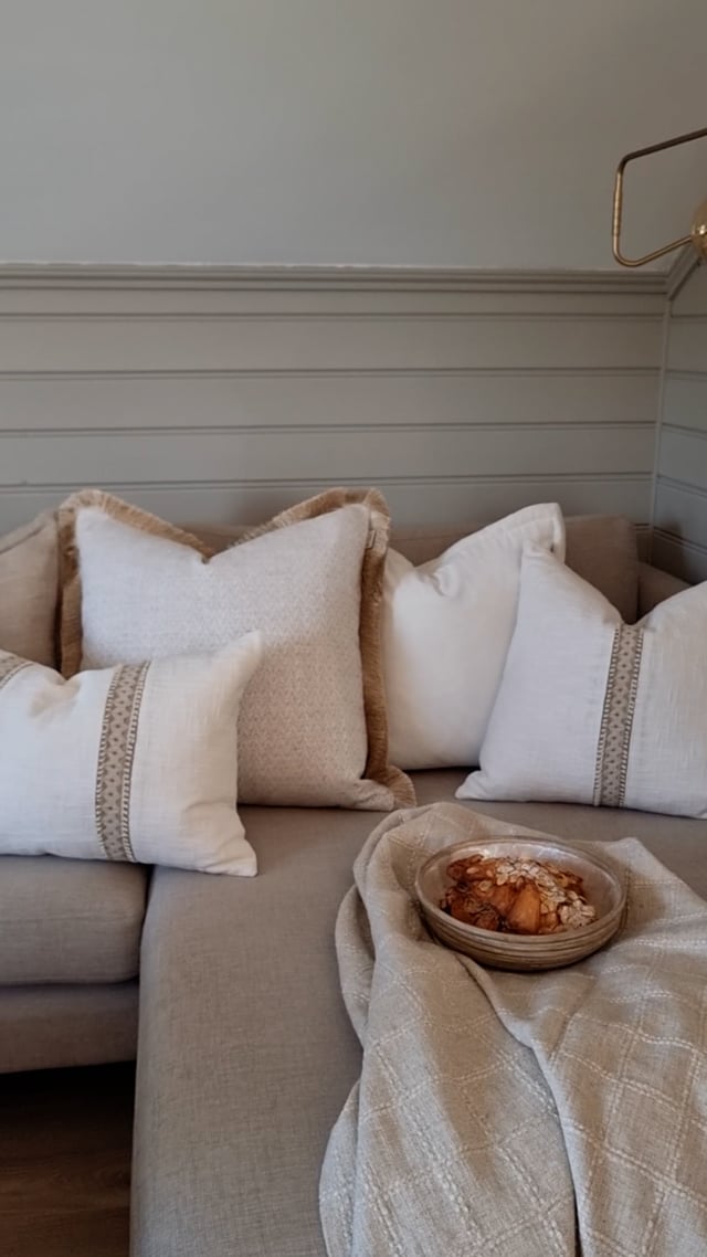 Lola är tillverkad i bomullsslub med dekorativa inslag av jute – en spännande kombination av mjuk textur och naturlig struktur.
