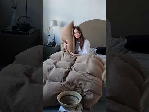 Mjukt bäddset i 100 % bomullsmuslin med rutmönster. Bomullstyget har lätt textur och ger en rynkad effekt på textilen. Detta gör tyget fantastiskt mjukt och luftigt. Både örngott och påslakan stängs med tygknappar och fransar på örngottet gör det extra tufft.